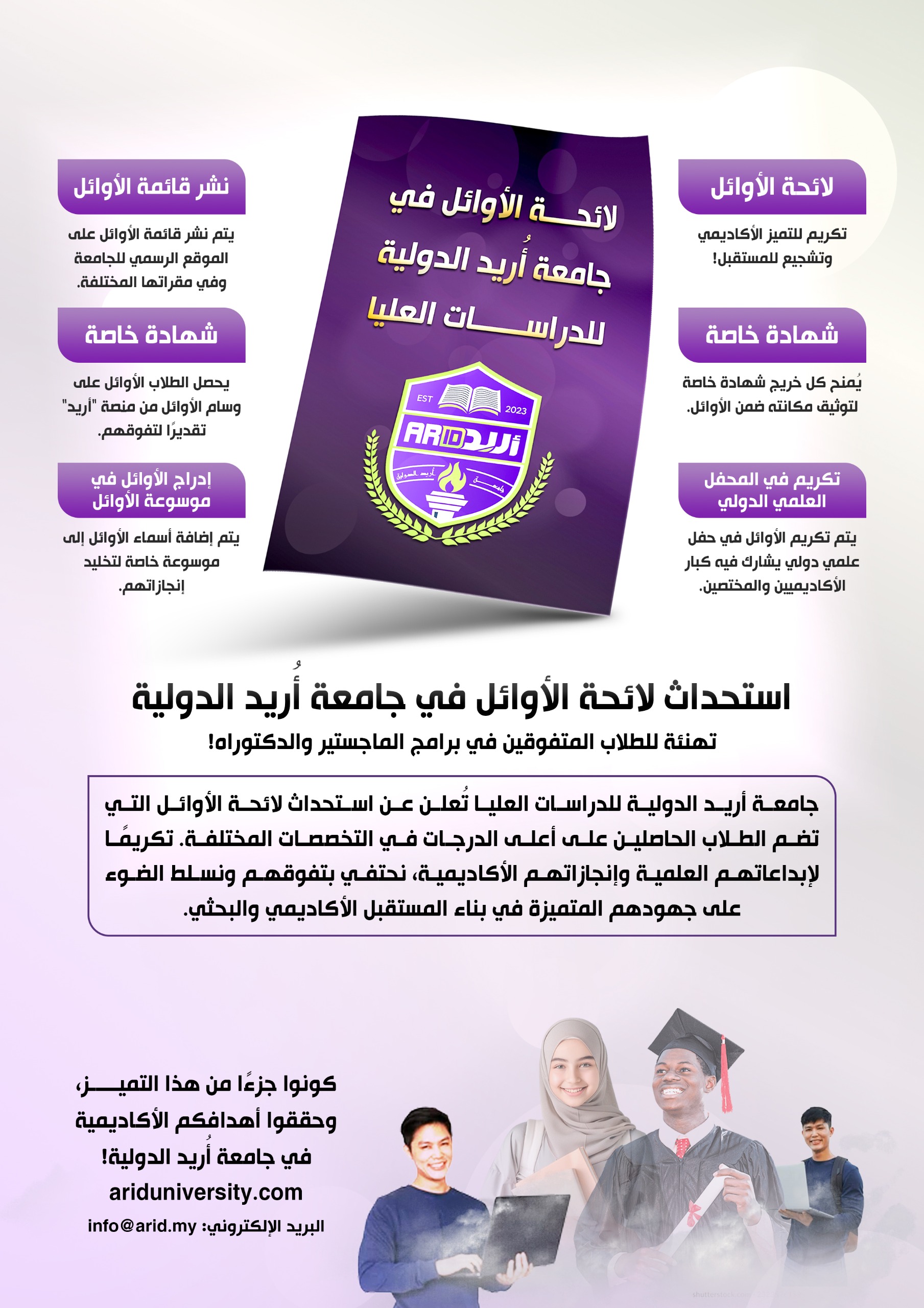 Be a part of this excellence and achieve your academic goals at Arid International University!